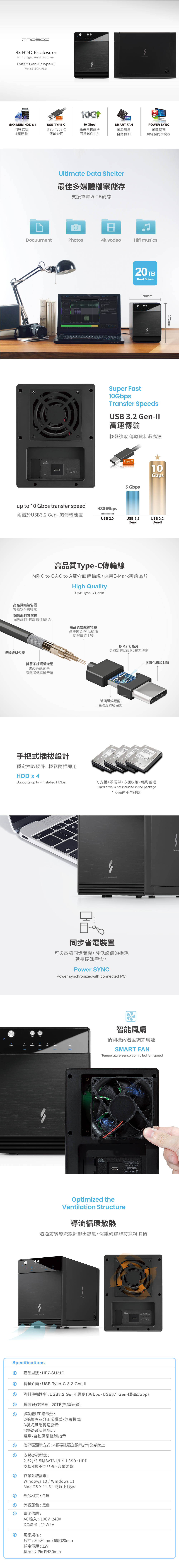 支援4顆 3.5吋/2.5吋SSD 不同容量 不同廠牌硬碟